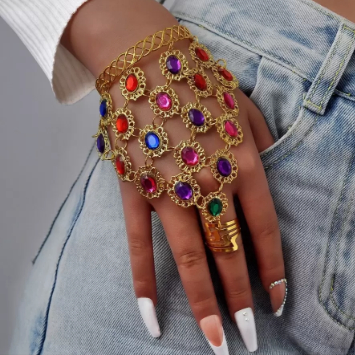Transforme qualquer look com este deslumbrante bracelete com pedrarias coloridas, ideal para quem busca estilo, brilho e originalidade.