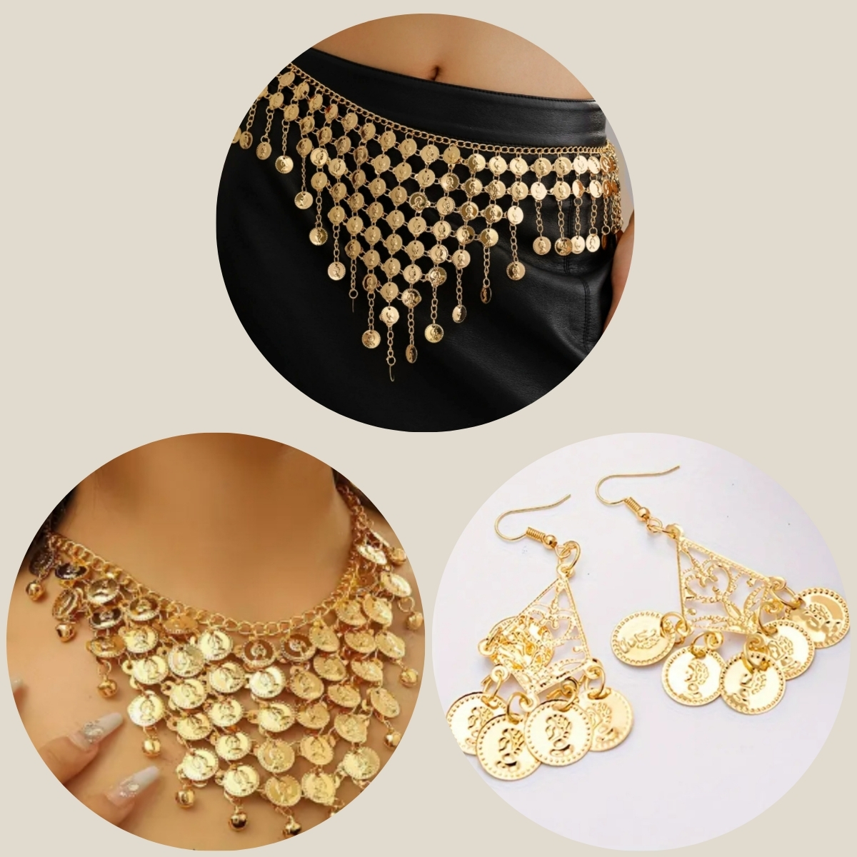 Combo 3 em 1 , Cinto, Colar e Brinco - Dança do Ventre - Cigana