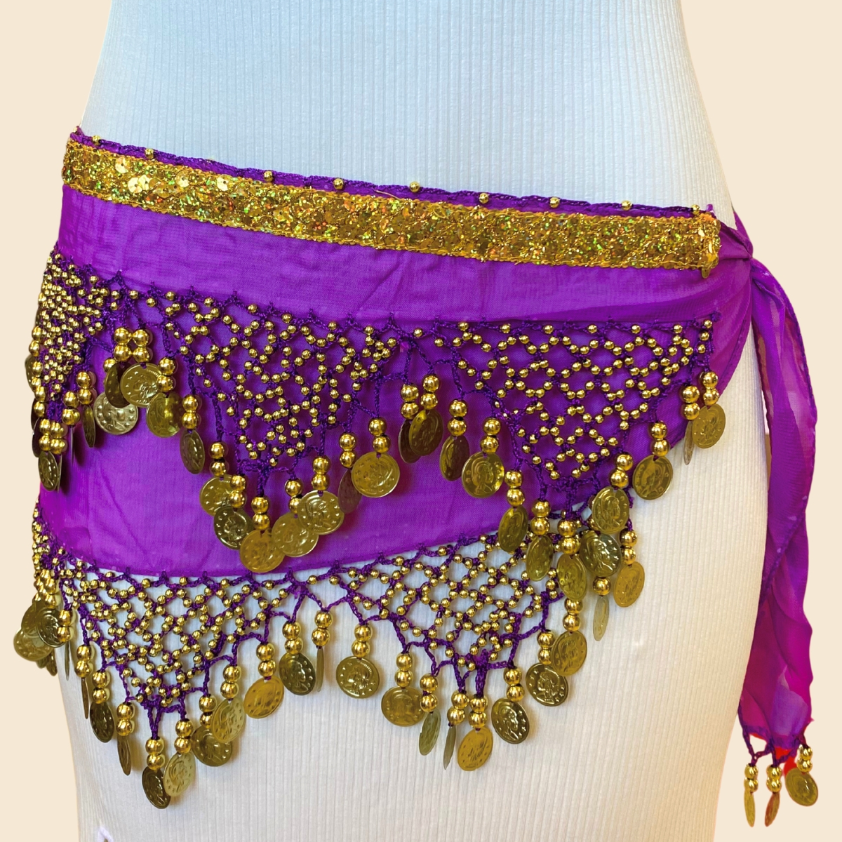 Complete seu visual com esse incrível lenço de quadril com moedas douradas e uma faixa de paetê dourado, perfeito para danças orientais, festivais, apresentações ou composições de looks criativos.