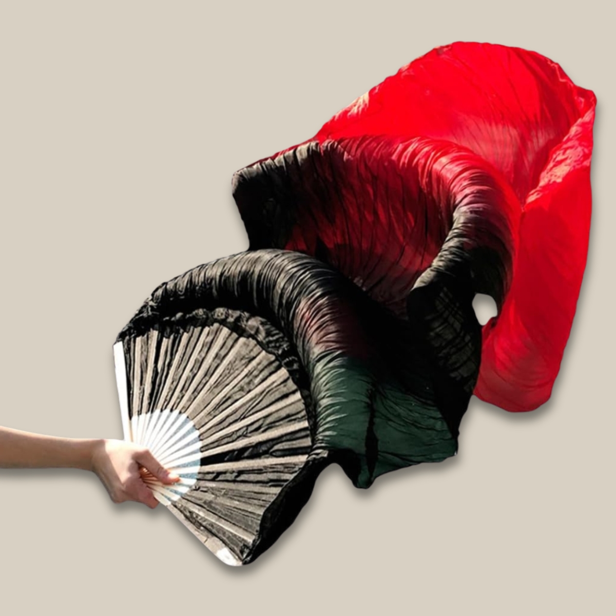 Véu Fan em Poliéster Degradê Unidade Vermelho e Preto|Dança do Ventre| Cigana