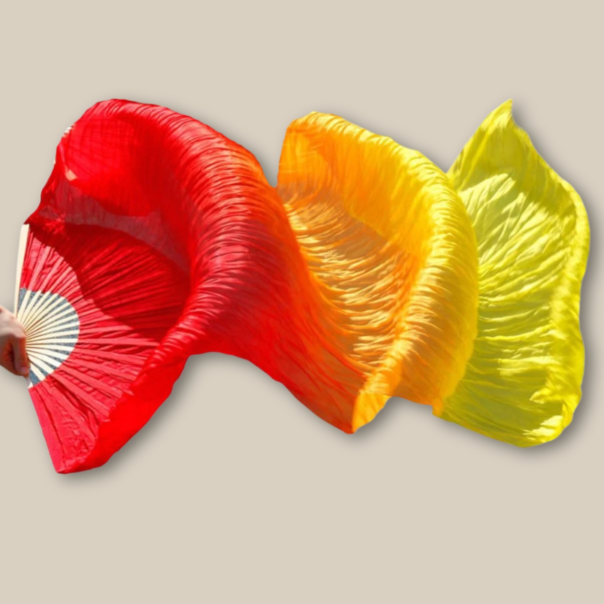 Véu Fan em Poliéster Degradê Unidade Vermelho e Amarelo |Dança do Ventre| Cigana