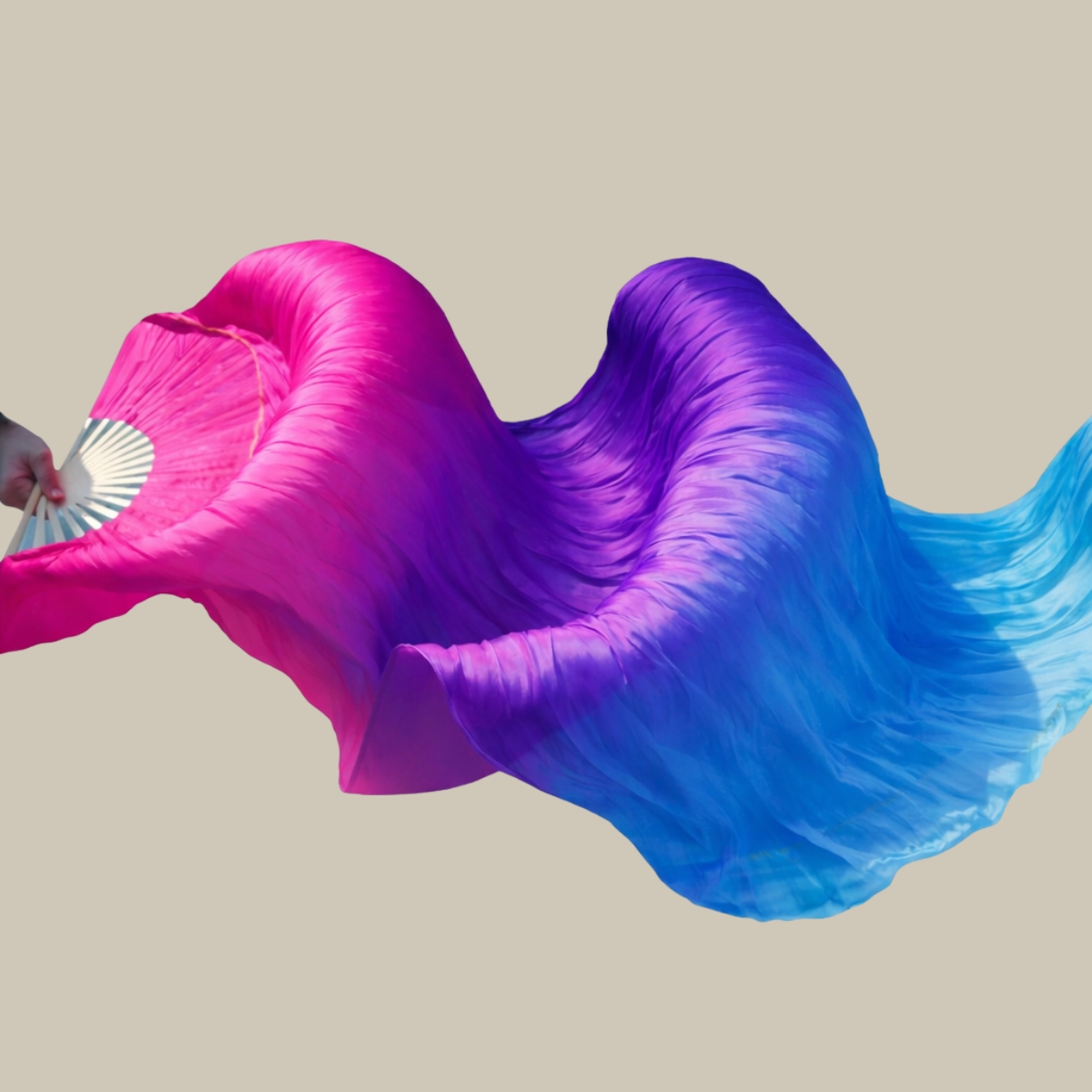 Véu Fan em Poliéster Degradê Pink, Roxo e Azul |Dança do Ventre| Cigana
